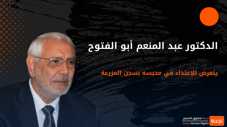 تستنكر وتدين بشدّة أسرة الدكتور عبد المنعم أبو الفتوح رئيس حزب مصر القوية، الاعتداء الهمجي الذي تعرّض له في محبسه بسجن مزرعة طره يوم الأربعاء الموافق ٢٣ مارس ٢٠٢٢ وتُحمّل النظام الحالي المسئولية الكاملة عن حياته وسلامته الجسدية والنفسية، وتُحمّل وزير الداخلية، ومساعد وزير الداخلية لقطاع مصلحة السجون ومأمور سجن المزرعة المسئولية المباشرة عن ذلك.